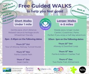 At Ayrshire Hospice, we understand the importance of nature in supporting well-being. That’s why we’re delighted to offer Blue Health & Green Health activities, designed to help individuals reconnect with the natural world and experience the benefits of outdoor-based well-being.